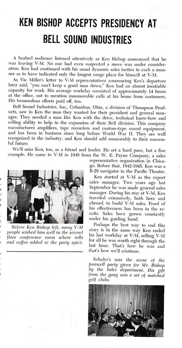 Articles About Ken Bishop Leaving V-M